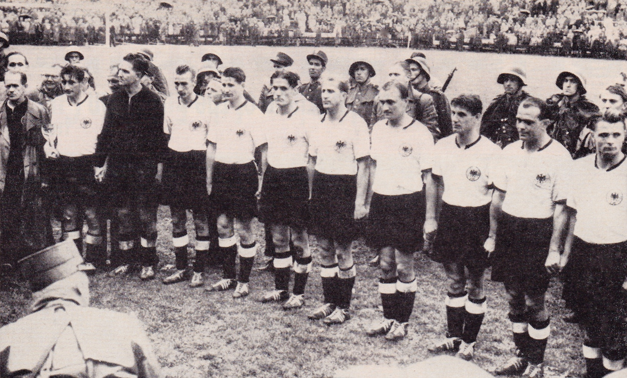 Left to Right (standing): Fritz Walter, Horst Eckel, Helmut Rahn, Ottmar Walter, Sepp Herberger, Werner Liebrich, Jupp Posipal, Max Morlock and Hans Schäfer.