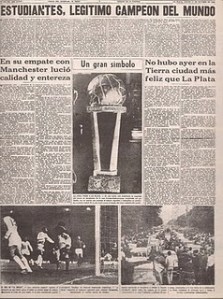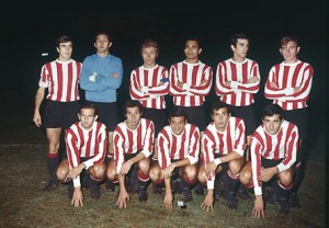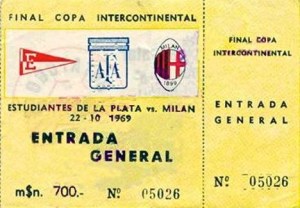Within weeks, the 1969 World Club Cup matches against Milan would see new depths of appalling behaviour plumbed by Aguirre Suárez and his teammates, alienating even the few remaining journalists who had continued to argue that the Estudiantes ends justified the means. Heavily defeated 3-0 in the First Leg in Italy – a match in which watching Brazilian team manager João Saldanha commented he would have sent off all 22 players within the first five minutes – Estudiantes took a spiteful revenge in the return game. After a half-hour of constantly disrupted and foul-strewn football, Milan’s Gianni Rivera collected a through pass, left Aguirre Suárez clumsily lunging at thin air and rounded keeper Poletti to score.