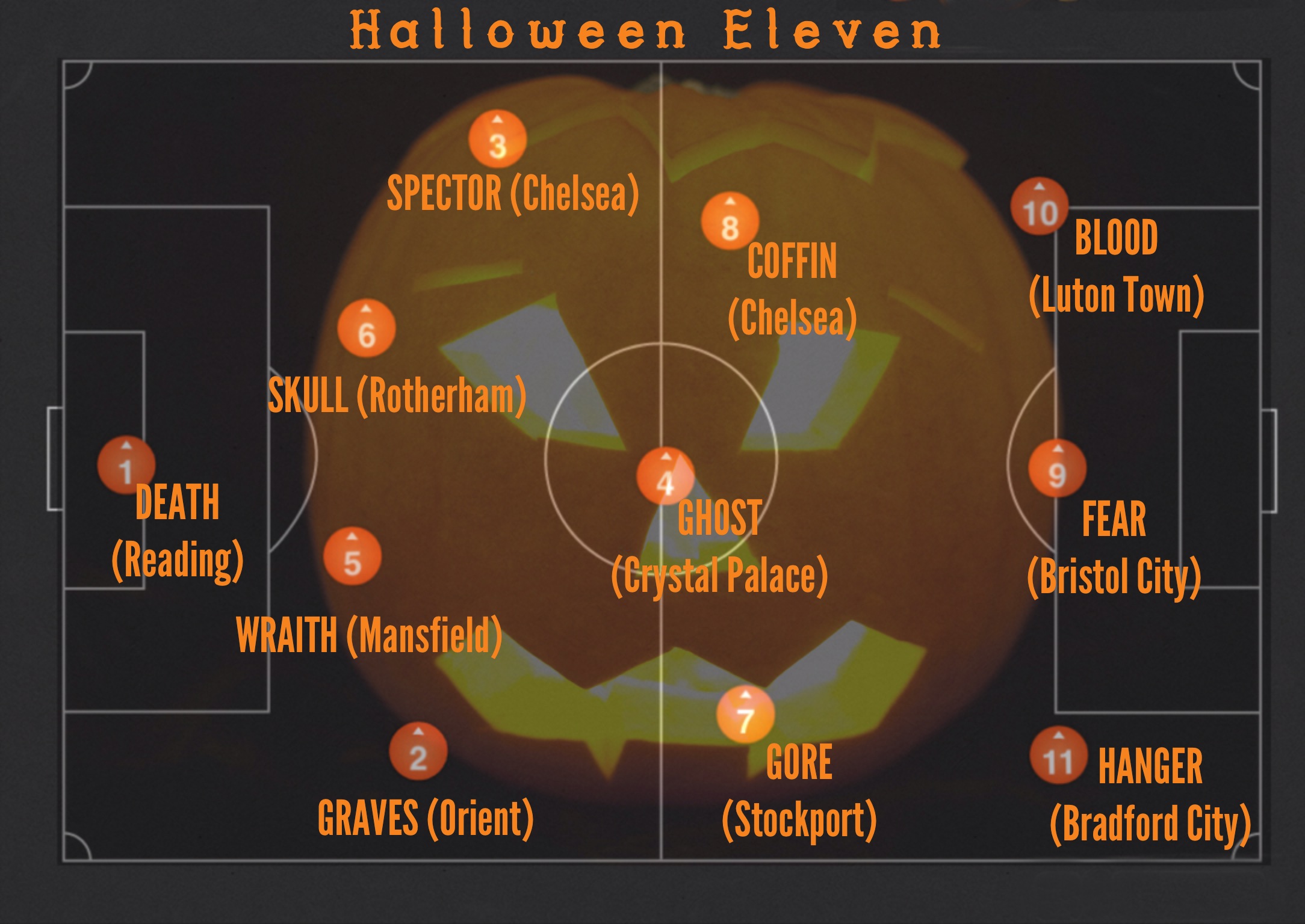 The sometime nightmare experience of playing last century English football ties in with this themed post, a special Halloween Eleven comprising a team of the most grisly named players from English League history. All of these players genuinely existed and either played or were on the books of their listed clubs.