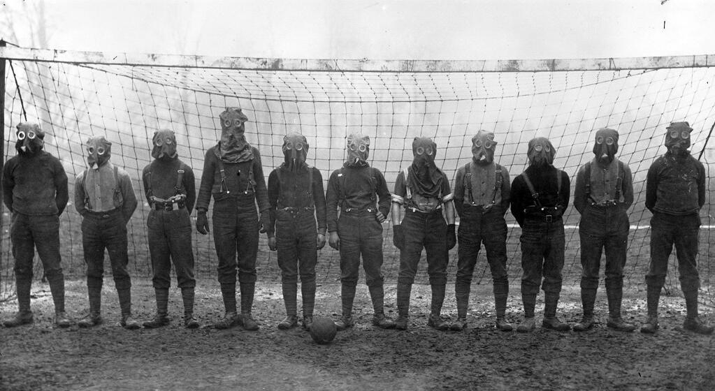 September 4, 2014September 4, 2014 British football team wearing gas masks, northern France, 1916 British football team wearing gas masks, northern France, 1916 Share this:Tweet Click to email a link to a friend (Opens in new window) Email Click to share on WhatsApp (Opens in new window) WhatsApp Click to share on Reddit (Opens in new window) Reddit Like Loading...