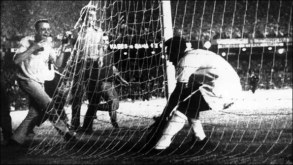 His next opportunity came three days later as Santos travelled to the Maracana and an 80,000 crowd braved a tropical downpour for their game against Vasco da Gama. Not really getting into the benevolent spirit of the evening was the Vasco defender Rene who marshalled the man of the hour effectively for the first 30 minutes. Finally Pelé escaped his attentions and fired in a shot that Vasco’s Argentinian keeper Andrade tipped over the bar. Shortly after another Pelé shot hit the bar and as he challenged for the rebound with Rene, the Vasco defender accidentally put the ball in his own net.