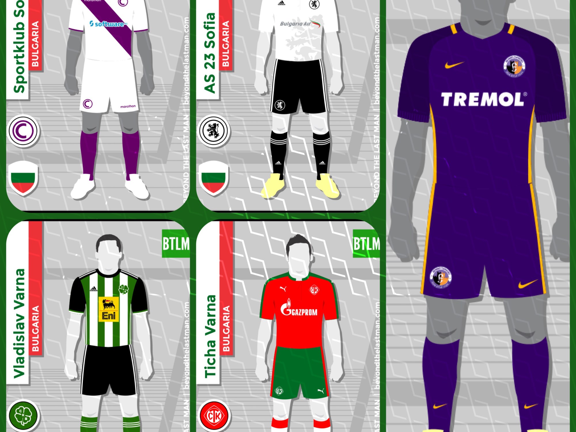 A follow-up to the Lost Champions of Bulgaria feature from earlier this week as we bring the country’s five extinct national champions – or at least their kits – back to life for 2016. The new strip designs imagine the style these clubs might wear today and draw heavily from historical precedent, complemented by the addition of contemporary touches.