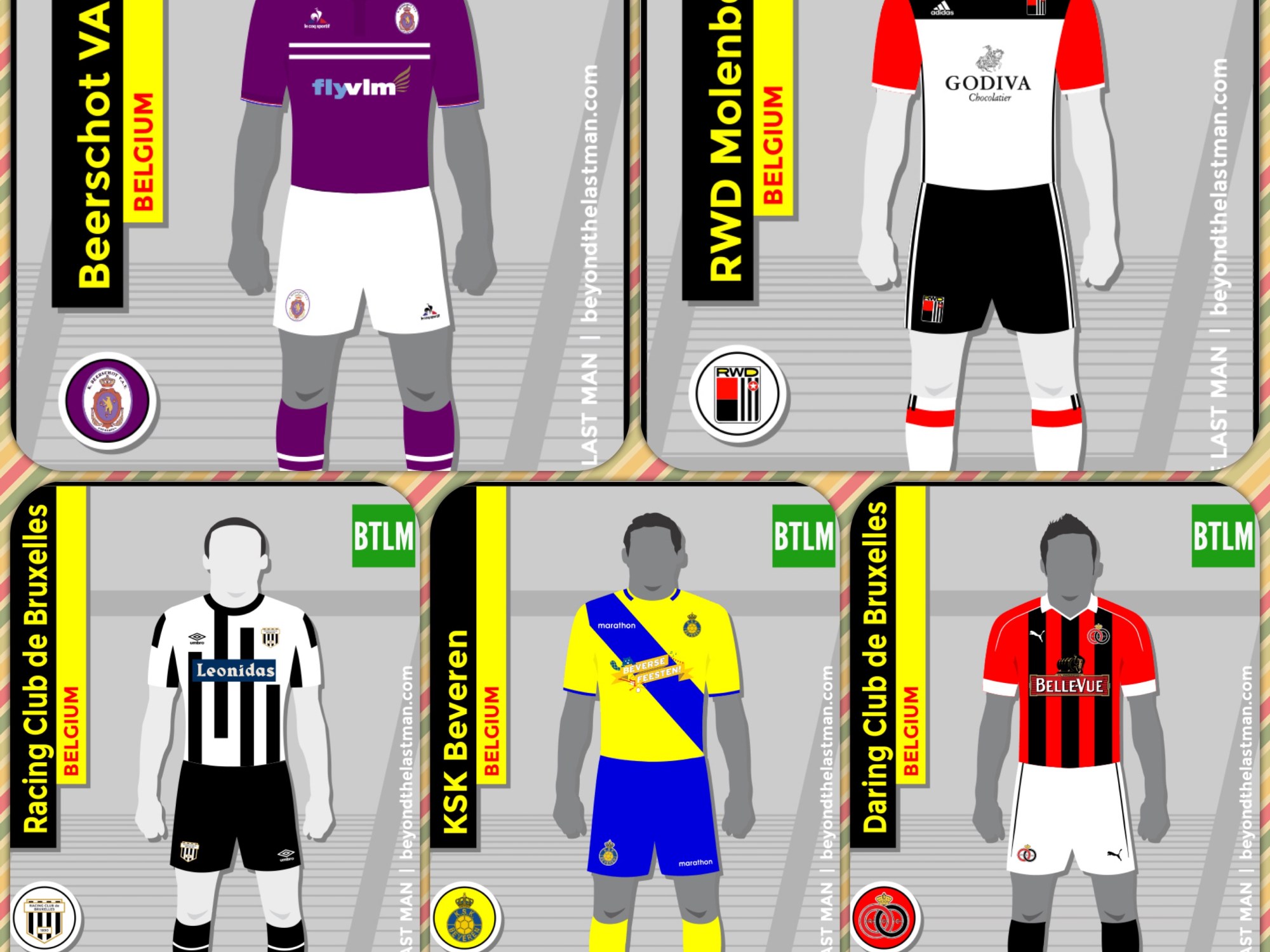 In our previous post we told the tale of the Lost Champions Of Belgium and the country’s five former title-winning clubs who don’t exist today in their original form. This lost quintet boast rich histories and represent some of the more emotive names from the European game past, so we’ve reimagined their strips for 2017 as part of our regular collaboration with Kitbliss guru Chris Oakley. Each of the clubs has had its strip reworked for the modern age with all due nods to historical precedent.