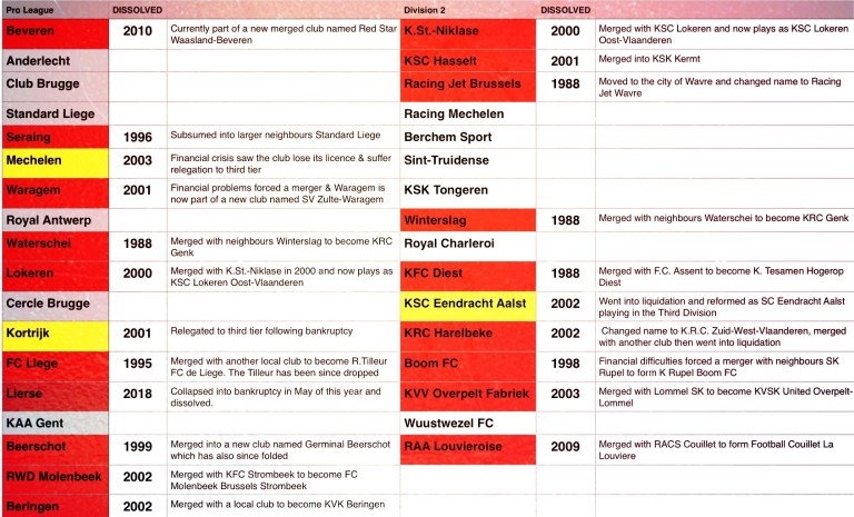 Now try to repeat the same historical process with Belgian football and see what wormholes it will lead you down. The Belgian club scene has a devilishly complex and convoluted past, one littered with perpetual financial crises and a merger culture rather too amenable to throwing out the old and ushering in the new at every possible opportunity. This readiness to dissolve clubs that have made valuable contributions in the past to the Belgian game shows a scant regard for the value of history and narrative that every strong football League needs.