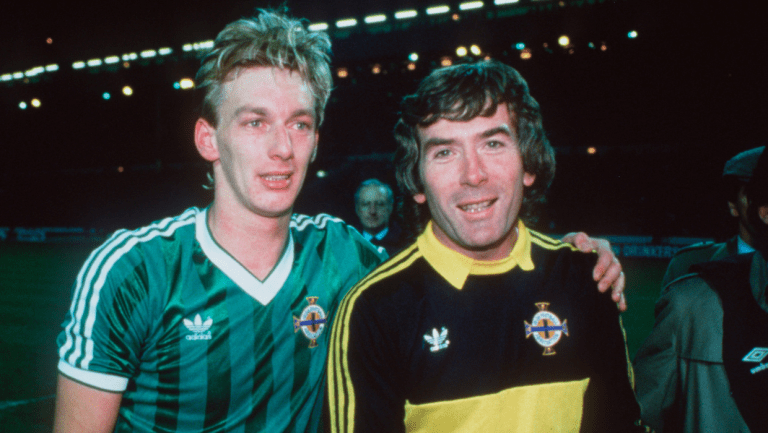 With the chant of ‘Northern Ireland, Northern Ireland…’ ringing around Wembley and the players celebrating, Bingham was approached by a suede-coated Tony Gubba of the BBC. He exclaimed: ‘We were anxious tonight…but we battled and fought like hell…’ Behind him, Jennings stood like the quiet man from Newry with Gubba yelling, ‘You can’t retire now Pat, you have a World Cup to star in..’ The forty-year-old just smiled.