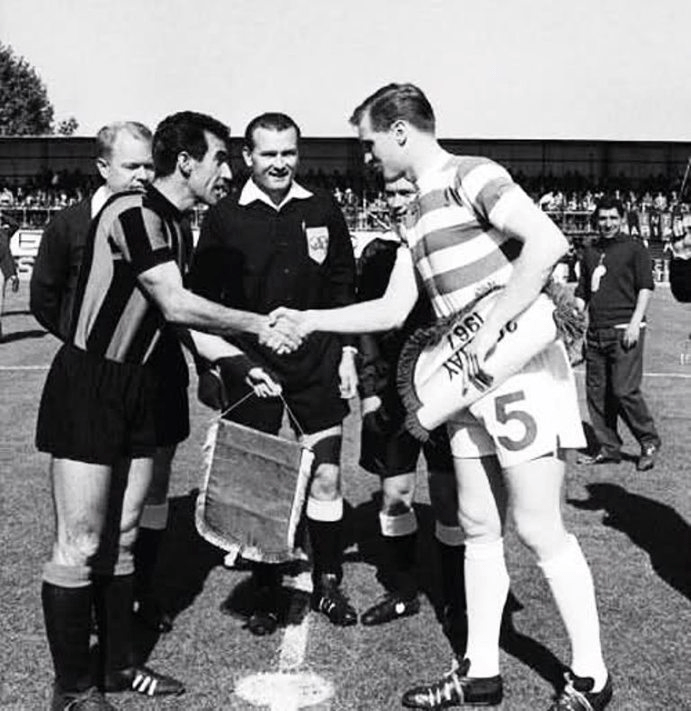 For the rest of the first half, and indeed the game, the Scottish side dominated the play, keeping the Inter team penned in their own half. Chances were coming, but mainly from distance and Celtic were unable to find the breakthrough thanks to the man of the match performance being played out by Inter goalkeeper Giuliano Sarti. Half-time came with Inter still leading but struggling to match the intensity with which their counterparts played.