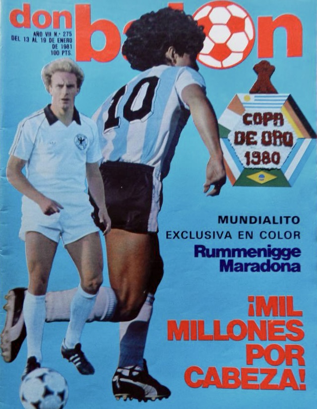 The mysterious competition in question is the Copa de Oro de Campeones Mundialies (the World Champions’ Gold Cup) – but more commonly known as El Mundialito (the Little World Cup) – and it was contested in the southern hemisphere summer as 1980 ticked over into 1981. The Uruguayan authorities invited all past World Cup winners and Argentina, Brazil, Italy and West Germany all consented, so ensuring a dazzling array of talent including Maradona, Rummenigge, Socrates, Tardelli, Junior, Kaltz and Kempes would be participating.
