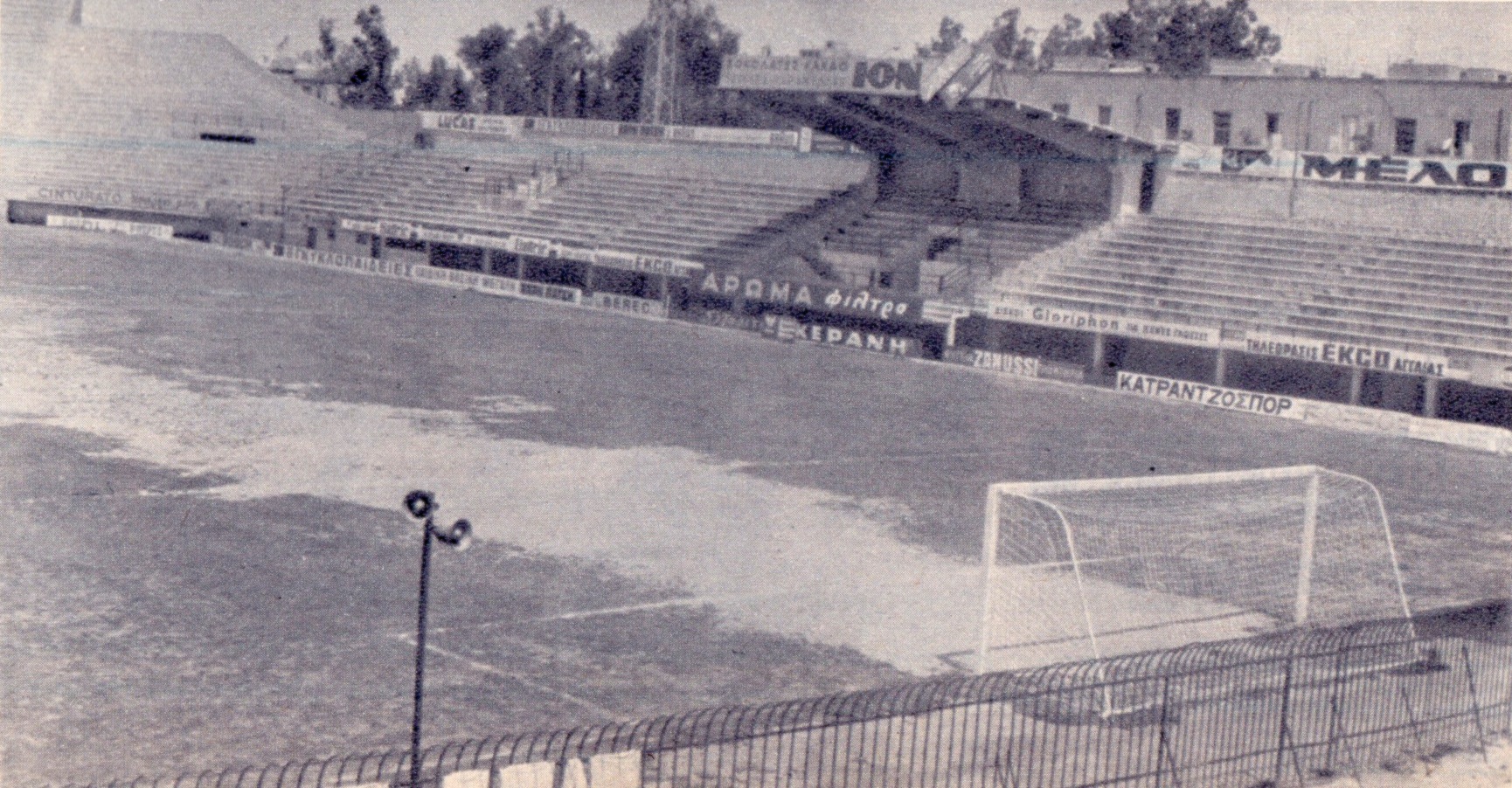 Dundee United played a friendly at the ground around that time and their players universally described the pitch as ‘murder;’ the worst they had ever played on without exception. The Greek grounds keeping staff managed a policy little more constructive than trying to disguise their problem by covering it with grass cuttings and loose soil. This meant that the ditch’s full extent was only revealed gradually to surprised visitors as a game progressed and its camouflage became dispersed.