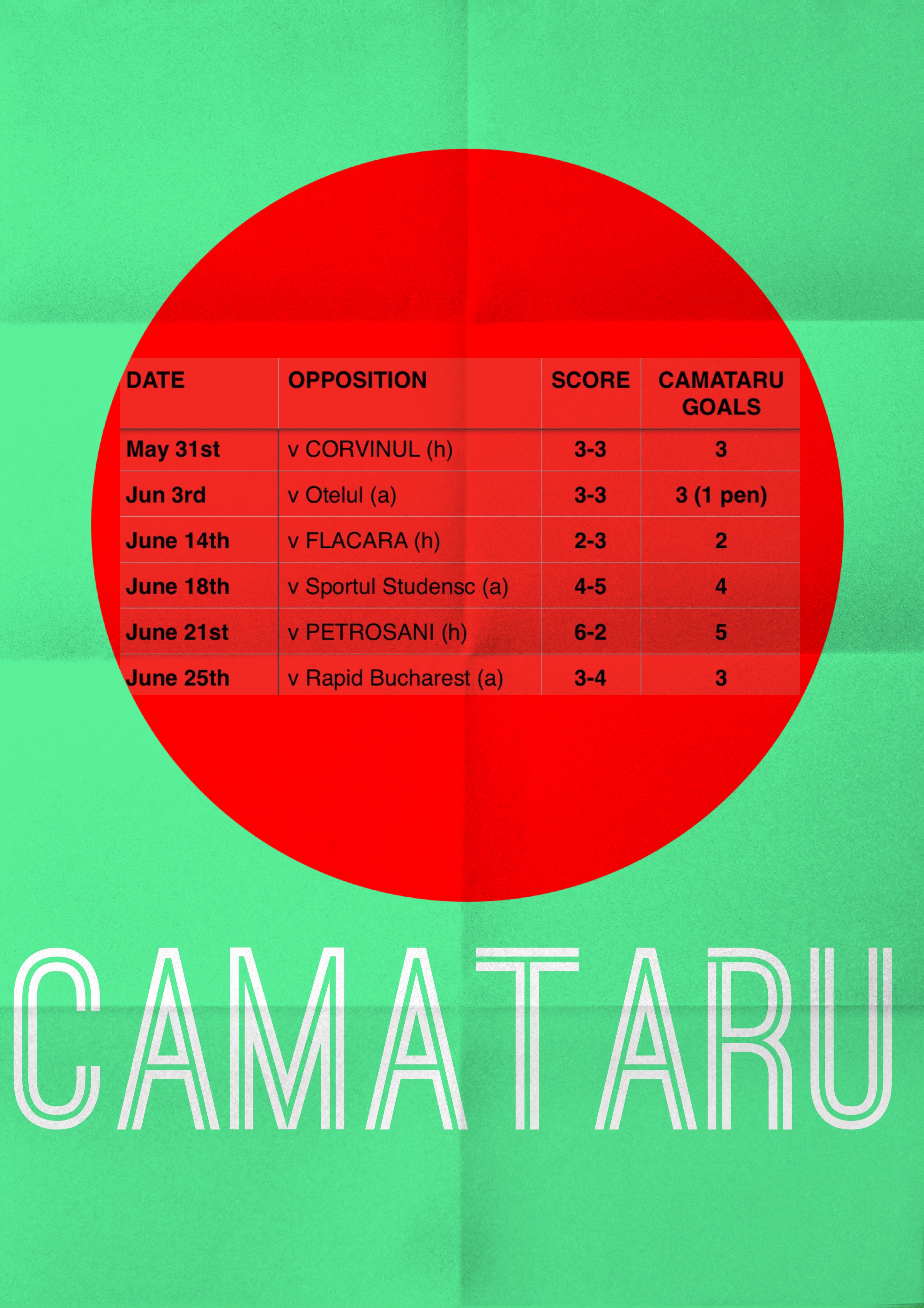 What seemed to rankle was not the number of goals Camataru scored in total, rather the suspicious pattern in which they were accrued at a time when the number of goals needed to win the Golden Boot was calculable. By the final day of May, Camataru’s debut season with Dinamo had yielded a respectable 24 goals in 28 games. By the time the last round of fixtures had been played and the season completed on the 25th of June, that total had rocketed to 44. At no other stage of his lengthy career did Camataru manage better than 23 goals in a season, and yet now he suddenly scored almost that number during this controversial month alone.