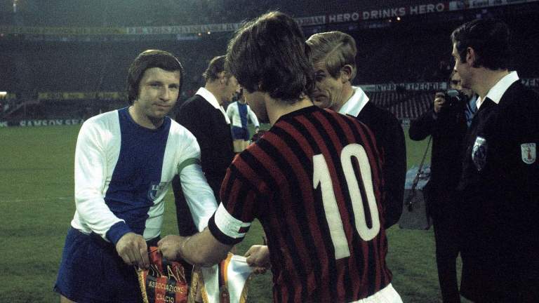With a Final that appeared such a foregone conclusion, just a few thousand fans from Italy bothered to travel to Rotterdam for the 1974 European Cup Winners’ Cup final. Here, after all, was AC Milan, nine-time Serie A champions, twice champions of Europe and winners of this particular competition the previous year. And while their team might have fallen far from its 1960s pomp, it still featured such luminaries as the Italian ‘Golden Boy’, Gianni Rivera, oft-capped international midfielder Romeo Benetti and the powerful and versatile West German defender Karl-Heinz Schnellinger.